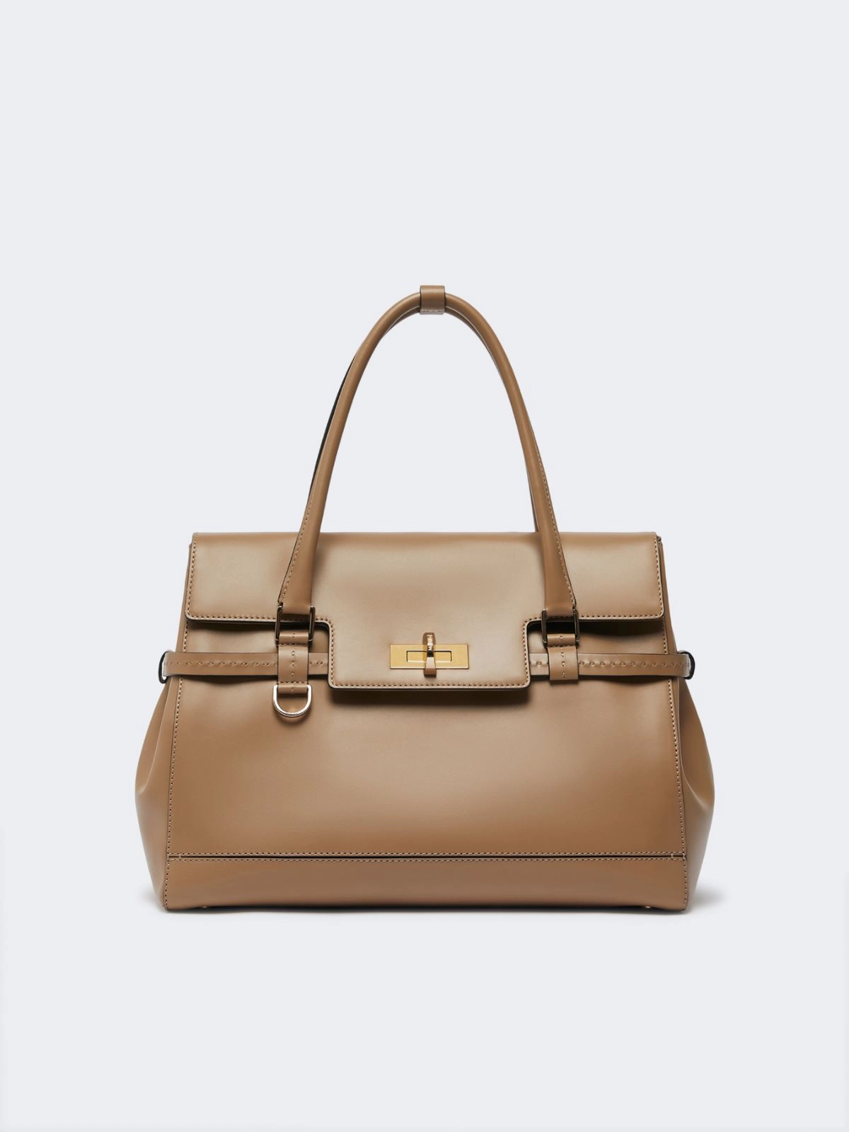 Medium Margaux bag with a distinctive feminine design and roomy volume with fold-away sides. External D-ring for attaching small leather items and removable crossbody strap.