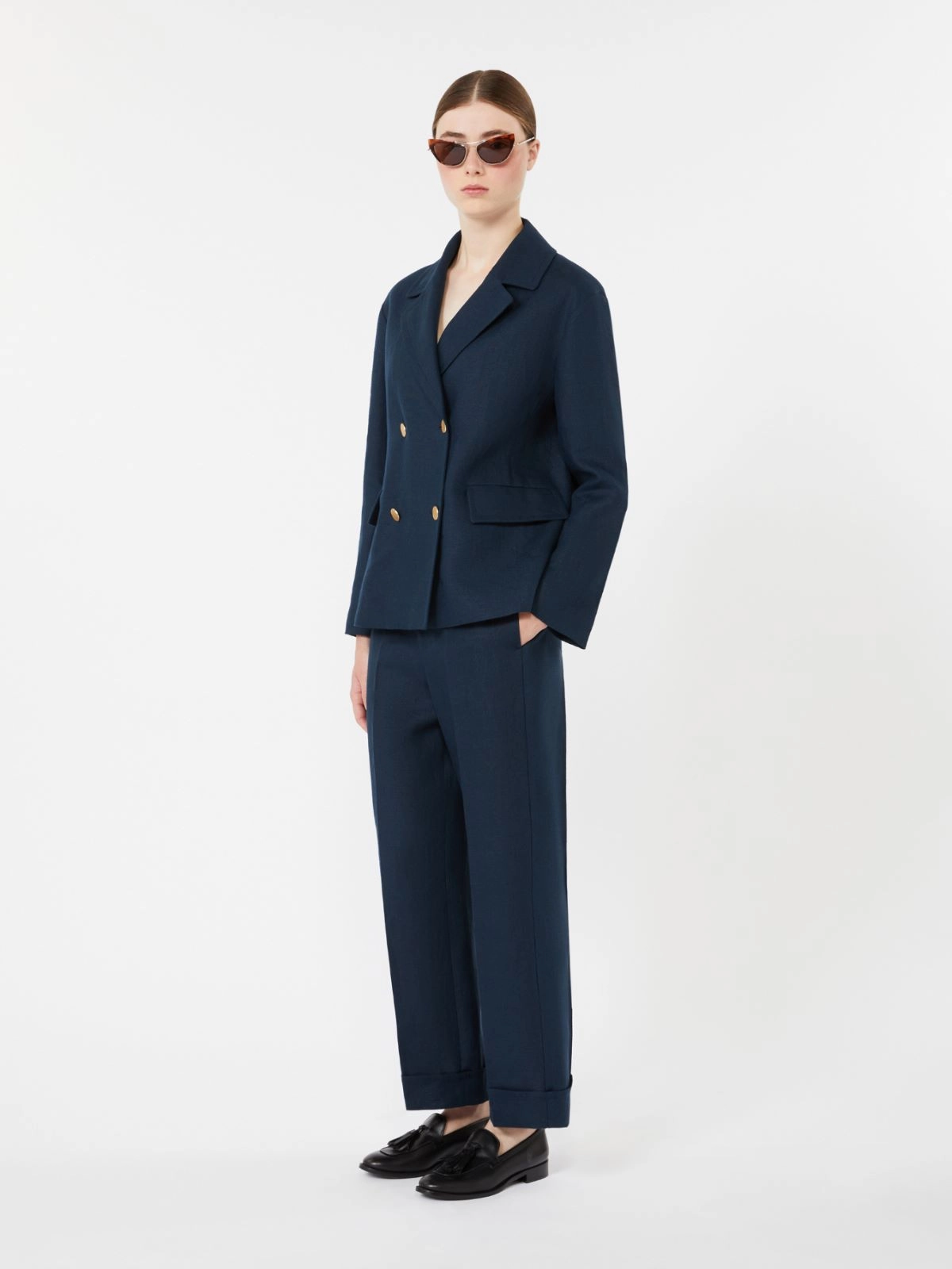 Linen basketweave straight trousers + MIDNIGHTBLUE - Max Mara